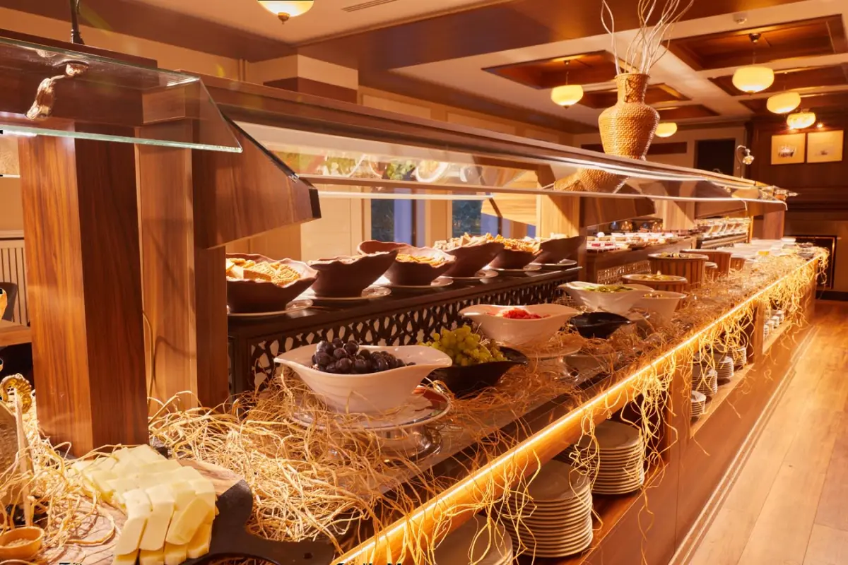 Oda Kahvaltı: Ana Restaraunt içerisinde; açık büfe sabah kahvaltısı, Ücretsiz çay, kahve kettle servisi. Odalarda günlük kişi başı 1 adet 0,5 lt su ikramı dâhildir. Yarım Pansiyon: Oda Kahvaltı Konsept + açık büfe akşam yemeği + 1 adet meşrubat)